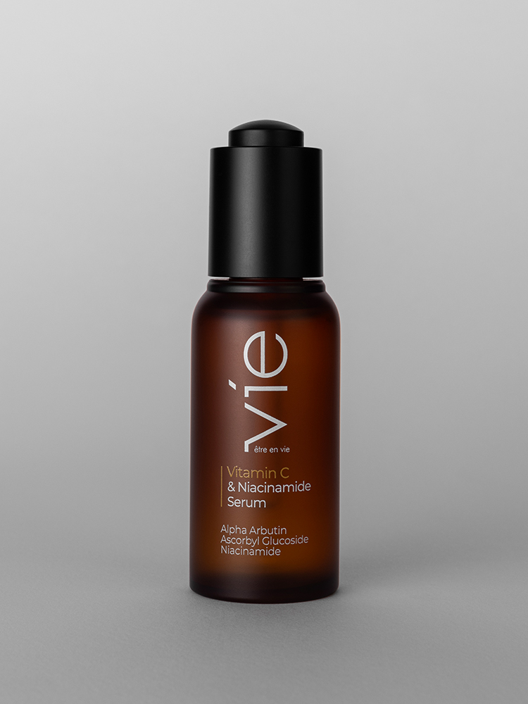 Vitamin C is a powerful antioxidant that brightens the skin, reduces dark spots, and helps protect the skin from sun damage.